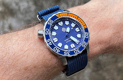 Available with a choice of lume colors and date or no-date variations, the Khuraburi also includes the NS1 Nylon Strap―an excellent option in the water and a casual, lighter weight alternative to the stainless bracelet. And with a standard 22mm lug width, this tool diver can be endlessly customized with aftermarket straps, including our own LS1 and LS2 leather straps, CS1 canvas strap, NS2 and NS3 nylon straps, RS1 and RS2 rubber straps and the SS1 and SS3 stainless bracelets.