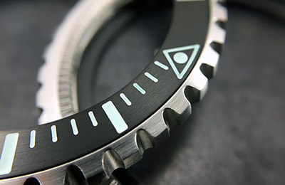 Available in several variations, the Komodo bezel is either solid stainless steel, or features a black PVD stainless steel insert attached to a stainless steel base. Scroll to the bottom of the page for a video tutorial of the bezel removal and installation process.