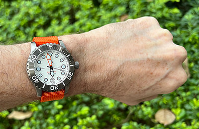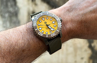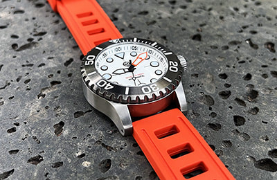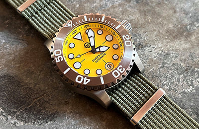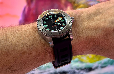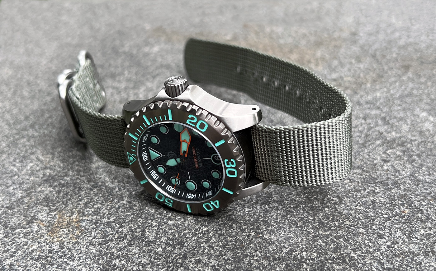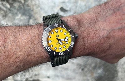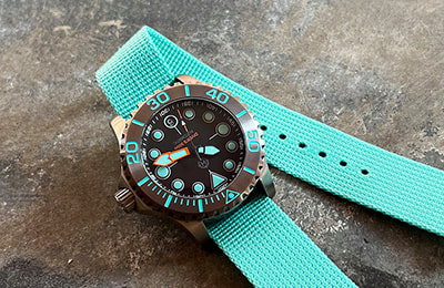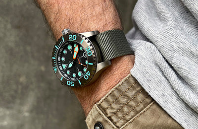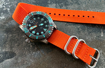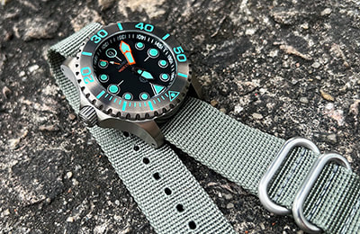 Available with three dial variations and several aftermarket bezel options, the Komodo Ti also includes the NS1 Nylon Strap―an excellent option in the water and a casual, lighter weight alternative to the bracelet. And with a standard 20mm lug width, the Komodo Ti can be dressed up or down with limitless aftermarket straps, including our own NS2 and NS3 nylon straps or RS1 and RS2 rubber straps.