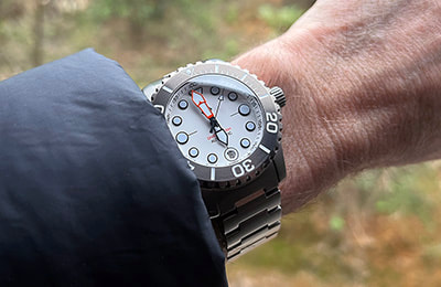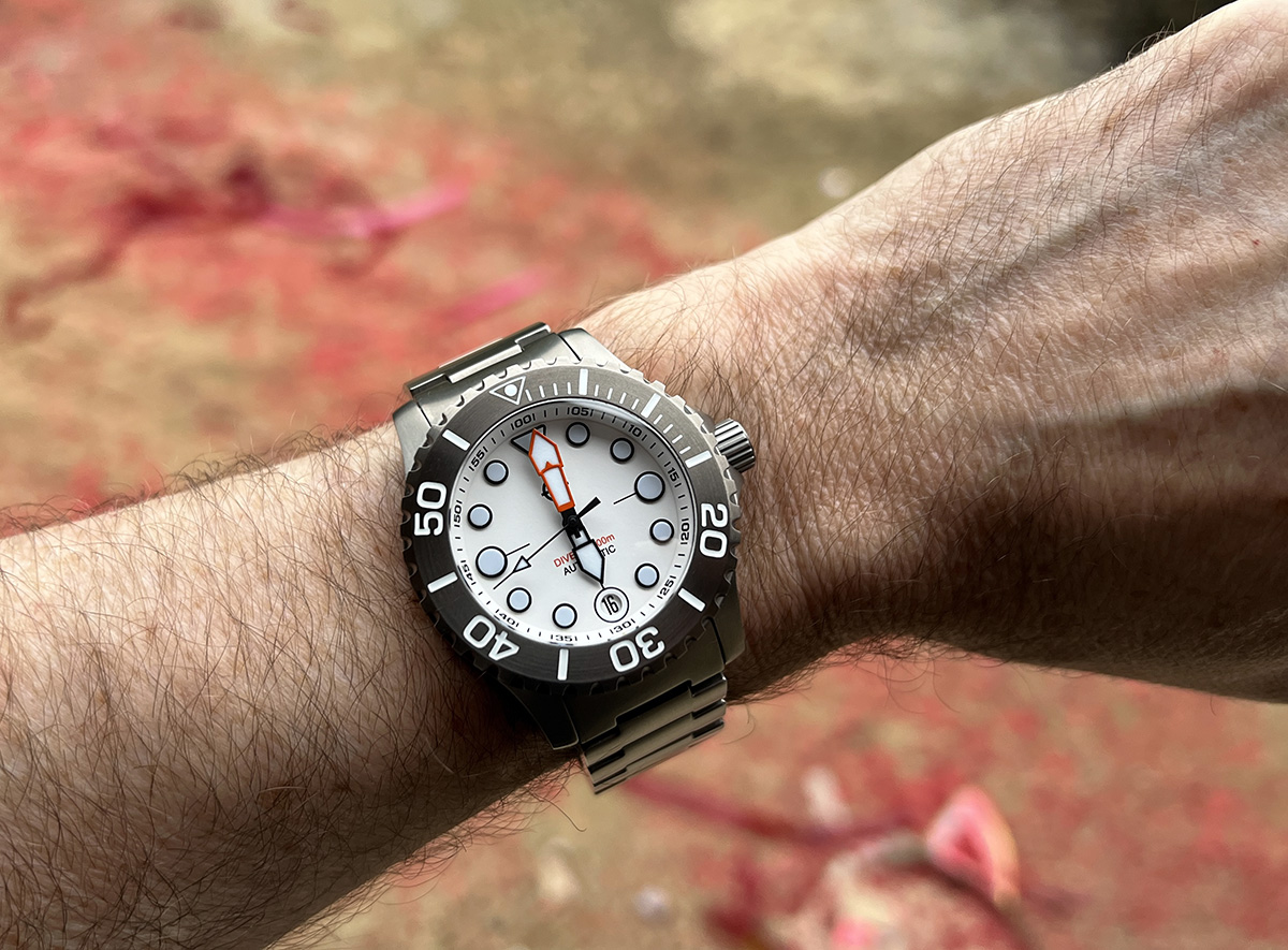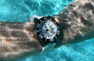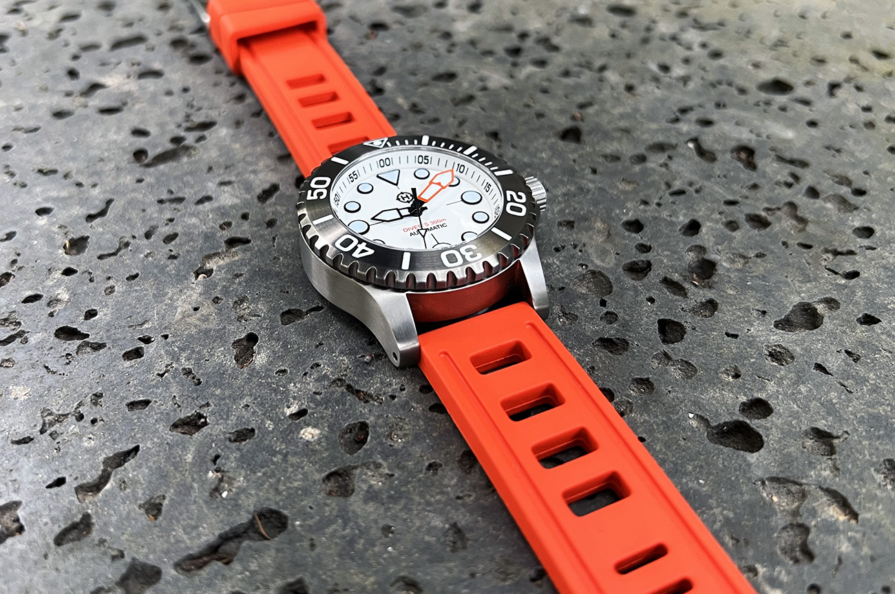 Tucked among the Lesser Sunda Islands of Indonesia, the remote Komodo island is home to the famed Komodo dragon, while the tropical waters surrounding the island are host to some of the richest marine biodiversity on the planet. Begging to explore these rich waters, the HELM Komodo Titanium features a G2 Titanium case and bracelet, automatic movement, screw-down caseback and crown, domed sapphire crystal, unidirectional bezel, highly legible dial and a 300 meter depth rating. With a compact case diameter of 40mm, the ISO 6425 compliant Komodo Ti is the perfect size to strap on for any far-flung adventure.