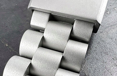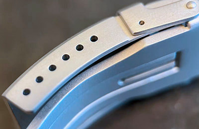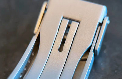 SS5 STAINLESS BRACELET Chunky but refined, the 3-link SS5 stainless bracelet features solid case links and a bead blasted finish and comes standard with the HELM Togiak Scout. Six removable links are secured with single sided screw pins for simple sizing adjustment. The included FC1 folding clasp features a matching bead blasted finish, six micro-adjustment holes that provide 15 mm of length adjustment and a snap-fit closure and secondary safety clasp that lock it securely shut. SPECIFICATIONS: