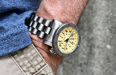 TS5 TITANIUM BRACELET Chunky in appearance but light on the wrist, the 3-link TS5 titanium bracelet features solid case links and a full brushed finish. It comes standard with the HELM Togiak Expedition and Expedition UTC and is also available to fit the Vanuatu Ti and Khuraburi Ti. Six removable links are secured with single sided screw pins for simple sizing adjustment. The included FC1-Ti folding clasp features a matching brushed finish, six micro-adjustment holes that provide 15mm of length adjustment and a snap-fit closure and secondary safety clasp that lock it securely shut. SPECIFICATIONS: